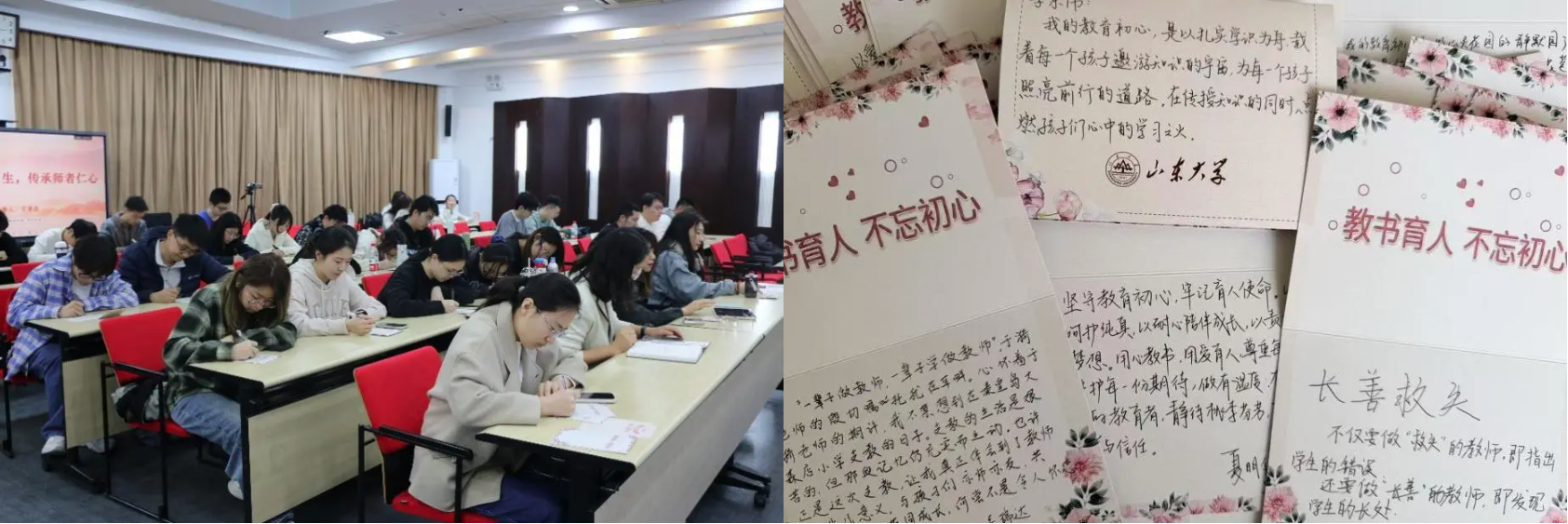 活动现场,全体与会学生还书写了“我的教育初心卡”,将他们对教育事业的理解和热爱、对成为优秀教师的期许落笔于笔尖,一张张卡片被整齐张贴在白板上,成为青年师范生们向于漪先生致敬、向教育事业立誓的生动见证。